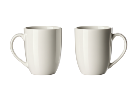 Serene Ceramic Cups: A pair of pristine ceramic cups, objects of minimalist elegance, offering a canvas for morning rituals or afternoon respites. Capture the simplicity and potential