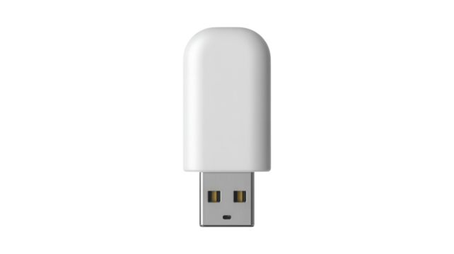 A clean white usb flash drive with a rounded cap and exposed connector isolated