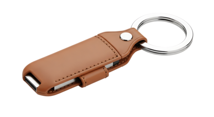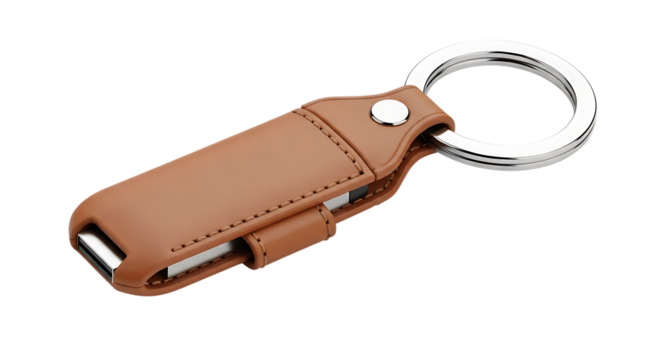 Brown Leather Keychain with Integrated USB Drive