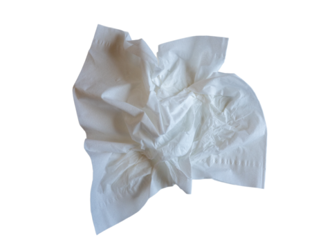 The Photo of a Used tissue paper on a white background, taken with a 45Mp high resolution camera.
