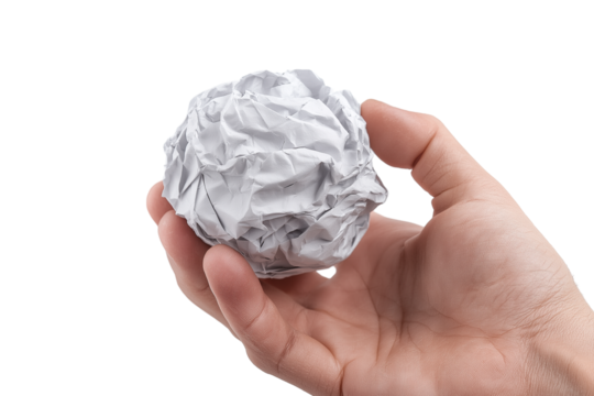 Crumpled Paper Ball Stress Concept Waste and Recycling Ideas Creative Block White Paper on transparent background