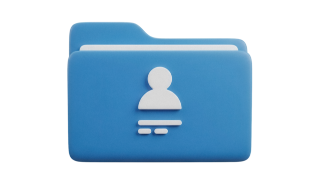 Blue folder with person icon isolated PNG, user data storage for contact management and personal information