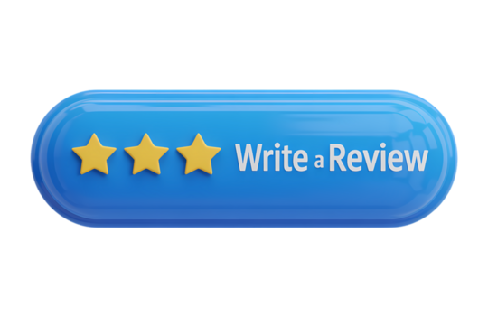 3d icon modern user interface elements: Write a Review button with star rating . Isolated on transparent background, png