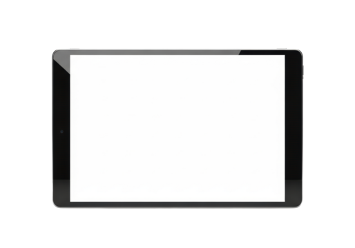 ultra-slim space gray aluminum tablet, blank white screen, centered, isolated on a seamless transparent background using high-key studio lighting, showcasing material texture. concept for digital