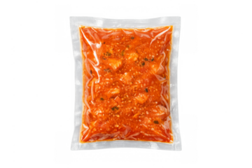 Fresh salmon fillet in vacuum sealed packaging on transparent background
