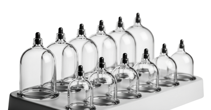 Set of glass vacuum suction cups for medical massage therapy on isolated background