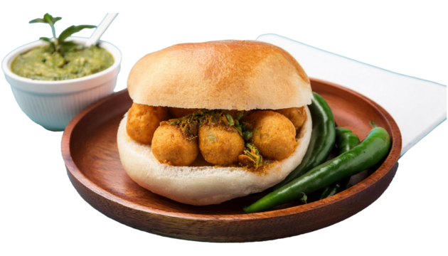Delicious vada pav indian street food meal isolated on transparent background