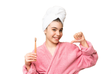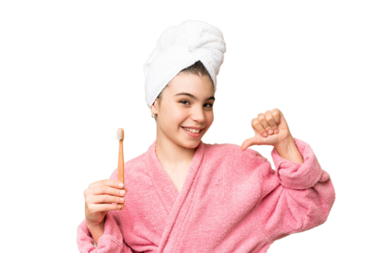 Little girl brushing teeth over isolated chroma key background proud and self-satisfied
