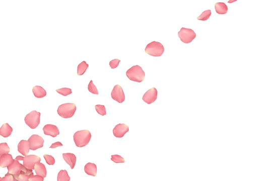 Realistic Illustration Pink Rose Petals Falling on Transparent Background