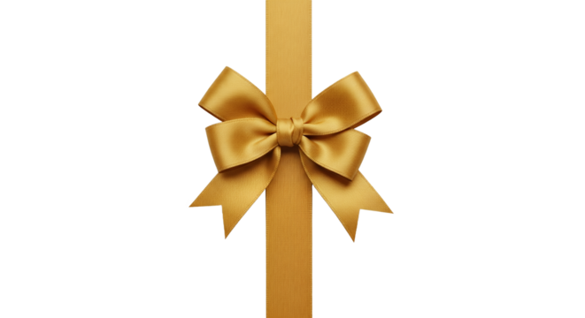Elegant Golden Ribbon Bow Decoration on White Background