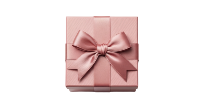 Elegant pink gift box with red ribbon and hearts on transparent background