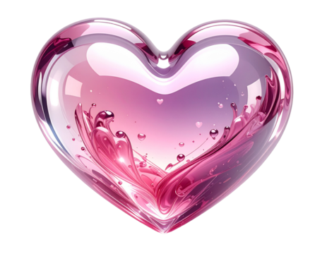 pink glass heart isolated on transparent background with copy space, png file