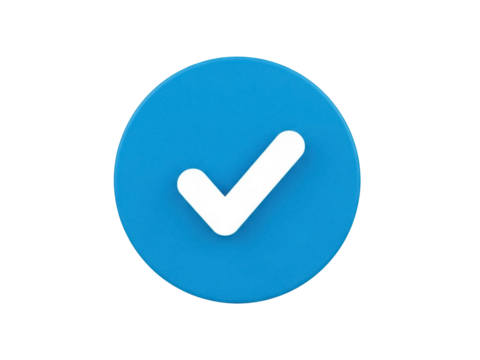Isolated, bright blue circle with a centered white check mark represents validation and approval
