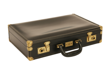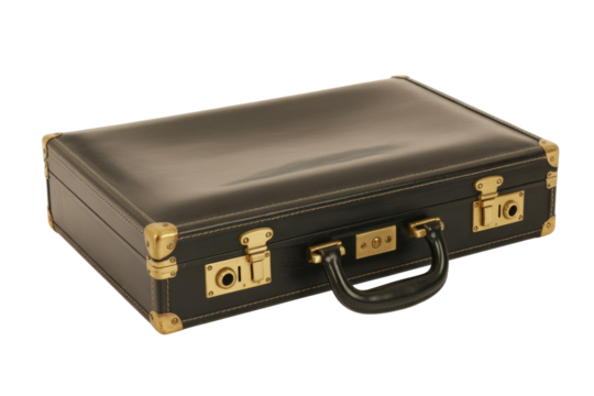 A sophisticated dark leather briefcase with elegant brass hardware and a sturdy handle, perfect for business or travel. background removed