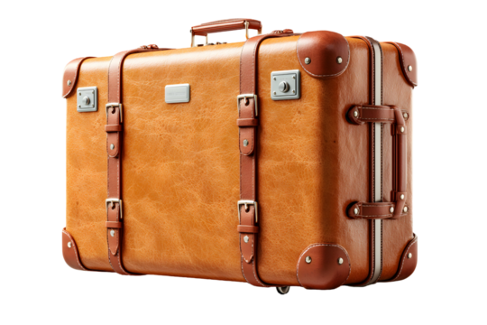 Vintage leather suitcase isolated on transparent background evokes classic travel style