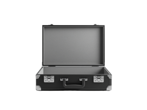 Open classic briefcase on an isolated transparent background, ready for contents and adventure,