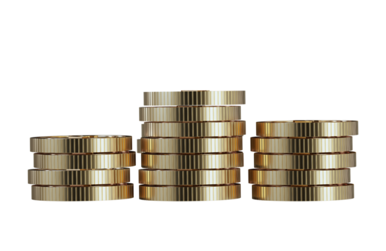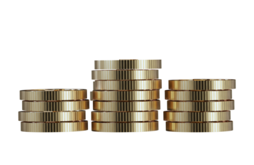 Stack of Gold Coins: Three stacks of gleaming gold coins, arranged neatly to symbolize wealth, prosperity, and financial success. A perfect image for illustrating concepts of money and investment.