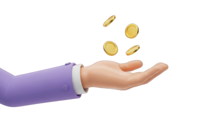 3D Money Bag and Coins 3D Render on transparent background