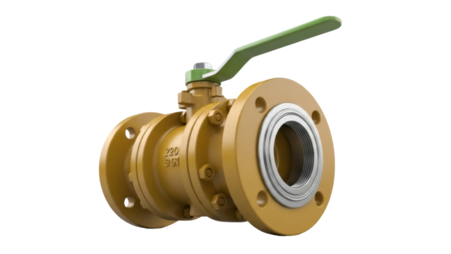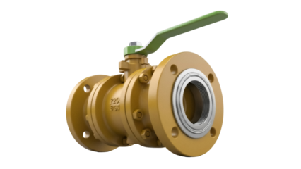 Isolated Ball Valve for Industrial Piping Systems, Yellow Body, Green Handle, and Silver Connection