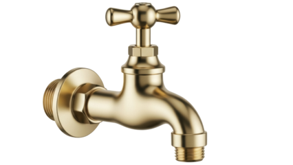 Gold faucet PNG isolated on transparent background, vintage style water tap for bathroom and kitchen fixtures, plumbing equipment