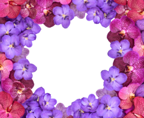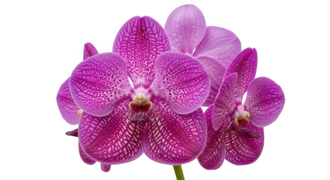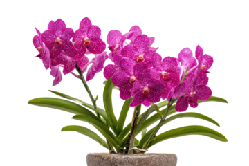 Purple vanda orchids in various stages of bloom isolated on transparent background showcasing unique floral structures and colors