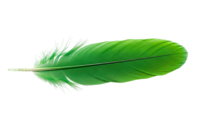 Vibrant green parrot feather with soft fluffy base and defined vane texture isolated on a transparent background