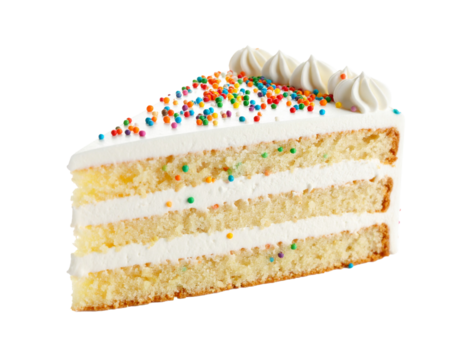 Vanilla party cake slice with sprinkles on transparent background