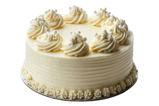 A delicious vanilla cake beautifully decorated with buttercream frosting perfect for celebrations isolated on transparent background. Generative Ai.