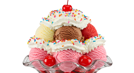 Strawberry dessert with vanilla ice cream chocolate drizzle and mint garnish on transparent backdrop a sweet and delicious treat for any occasion