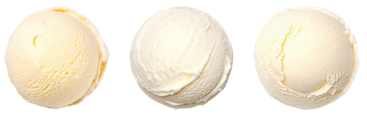 Set of a creamy vanilla ice cream with visible vanilla bean specks isolated on a transparent background
