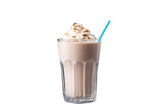 Classic Milkshake with Straw Isolated on Transparent Background