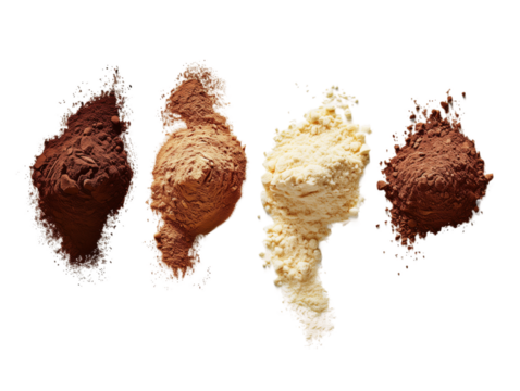 This graphic displays four different protein powders, showcasing their unique colors and textures for health-conscious individuals