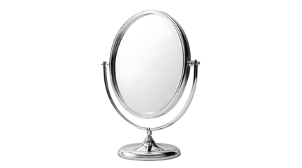 Reflecting serenity in a minimalist setting with a classic round mirror on a bright surface isolated on transparent background