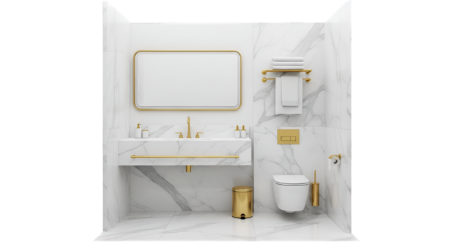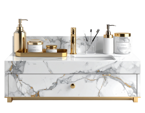 Elegant Marble Vanity Set with Gold Accents Transparent Background.