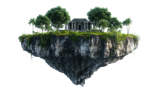Exploring Vistas: Brass Telescope Overlooking Cliff on white background