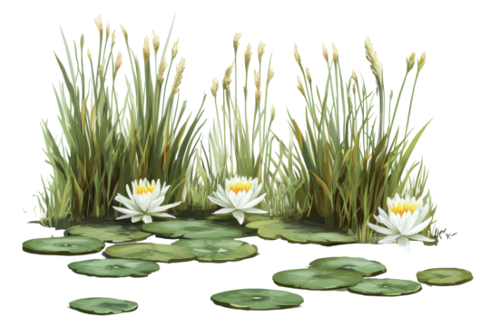 Wetland grasses and plants illustration isolated on white perfect for environmental designs and nature projects