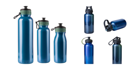 Various Sizes of Blue Water Bottles in Modern Design for Hydration