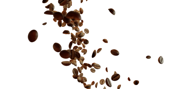 Pumpkin seeds scattered across isolated transparent background in close-up view. Seeds vary in size and shape, some larger and more spherical, others smaller and elongated. Alpha mask.