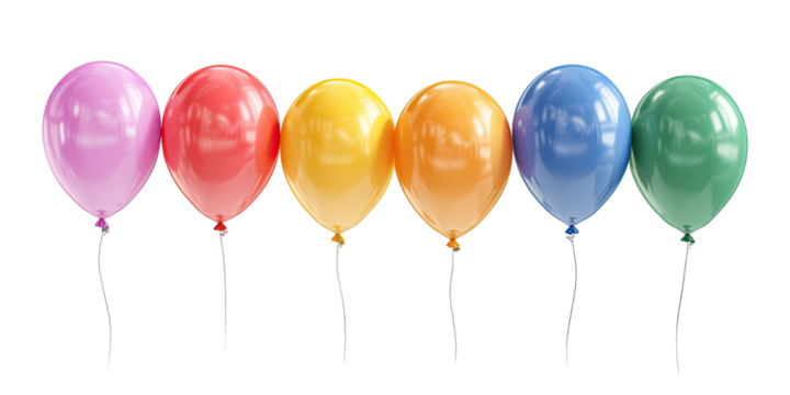 3D Rendered Colorful Helium Balloons Tied Together in a Line