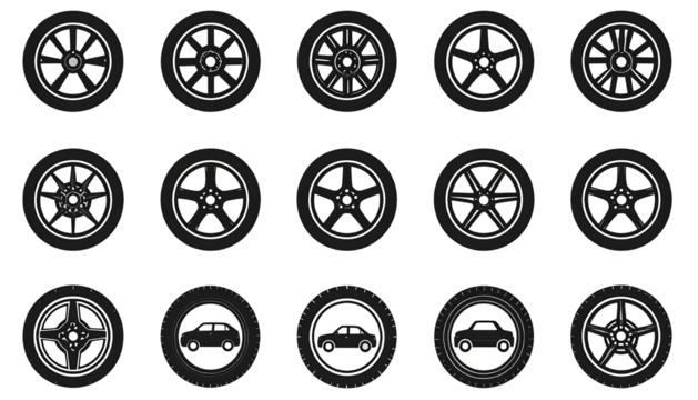 Set of Car Wheel and Tire Icons.