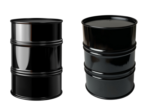 Shiny Blue Industrial Metal Barrels on Transparent Background Depicting Storage and Transportation Containers