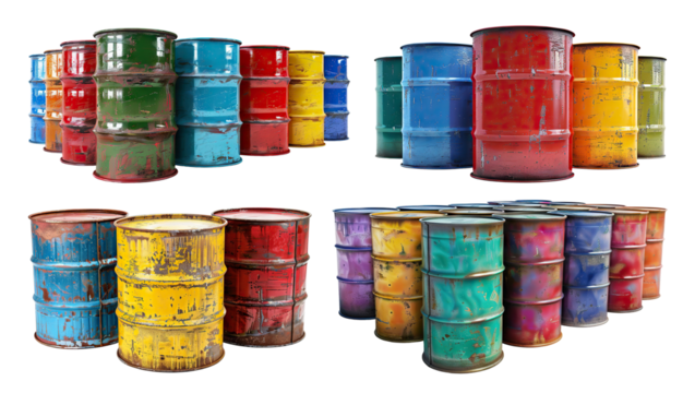 Set of colorful metal oil barrels, cut out