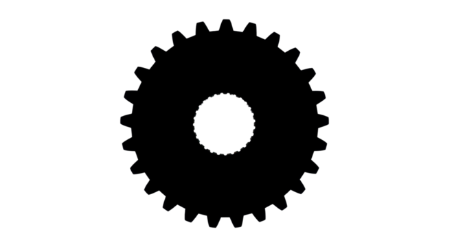 Black silhouette of a gear with teeth isolated PNG with Transparent Background