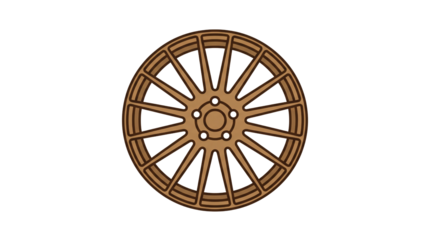 Golden sunburst gear with curved teeth on transparent background