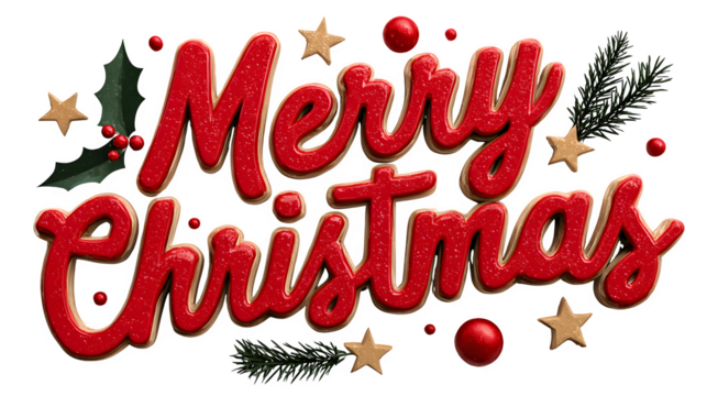 Elegant Merry Christmas Calligraphy with Golden Swirls, Transparent PNG