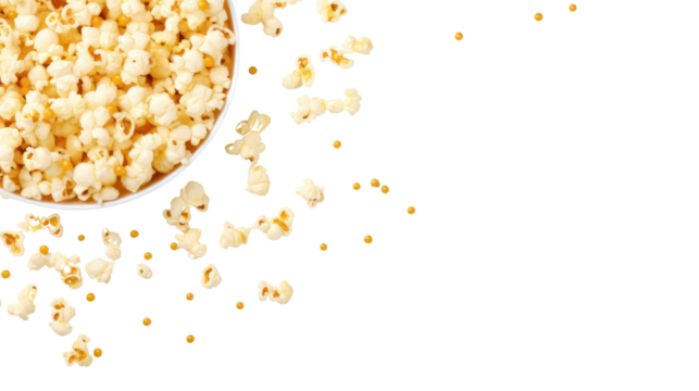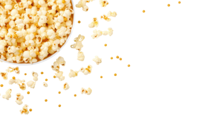 Caramel Popcorn Isolated pieces on a white background Shows white, swollen popcorn kernels. Rich golden caramel and salt clearly