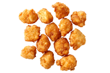Closeup of golden and crispy Panko Chicken Nuggets isolated on a white transparent background