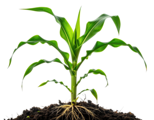 Young corn plant with visible roots