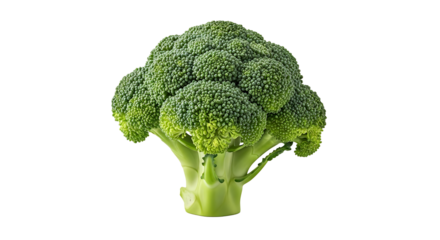 A vibrant head of broccoli stands out against a transparent background, showcasing its fresh and natural appeal.