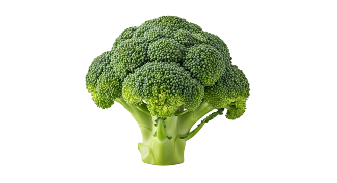 Fresh broccoli head on transparent background for culinary and dietary concepts